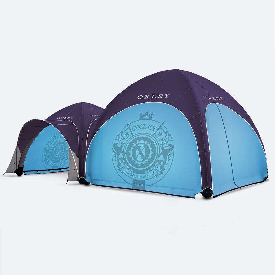 GYBE Event Tent 5000 Standard - Das außergewöhnliche aufblasbare Eventzelt / Werbezelt in vielen individuellen Farbzusammenstellungen zum Aufpumpen im praktischen One-Pump-System. In wenigen Minuten entsteht aus der handlich verpackten Hülle ein 5 x 5 m großes Kuppelzelt. Extrem leicht, robust, formstabil und flexibel einsetzbar. Ihr GYBE Event Tent 5000 Standard wird inklusive Sandsäcken, Transporttasche, Reparatur-Set, Abspannseilen und Doppelhub-Handpumpe geliefert. Branding / Aufdruck
