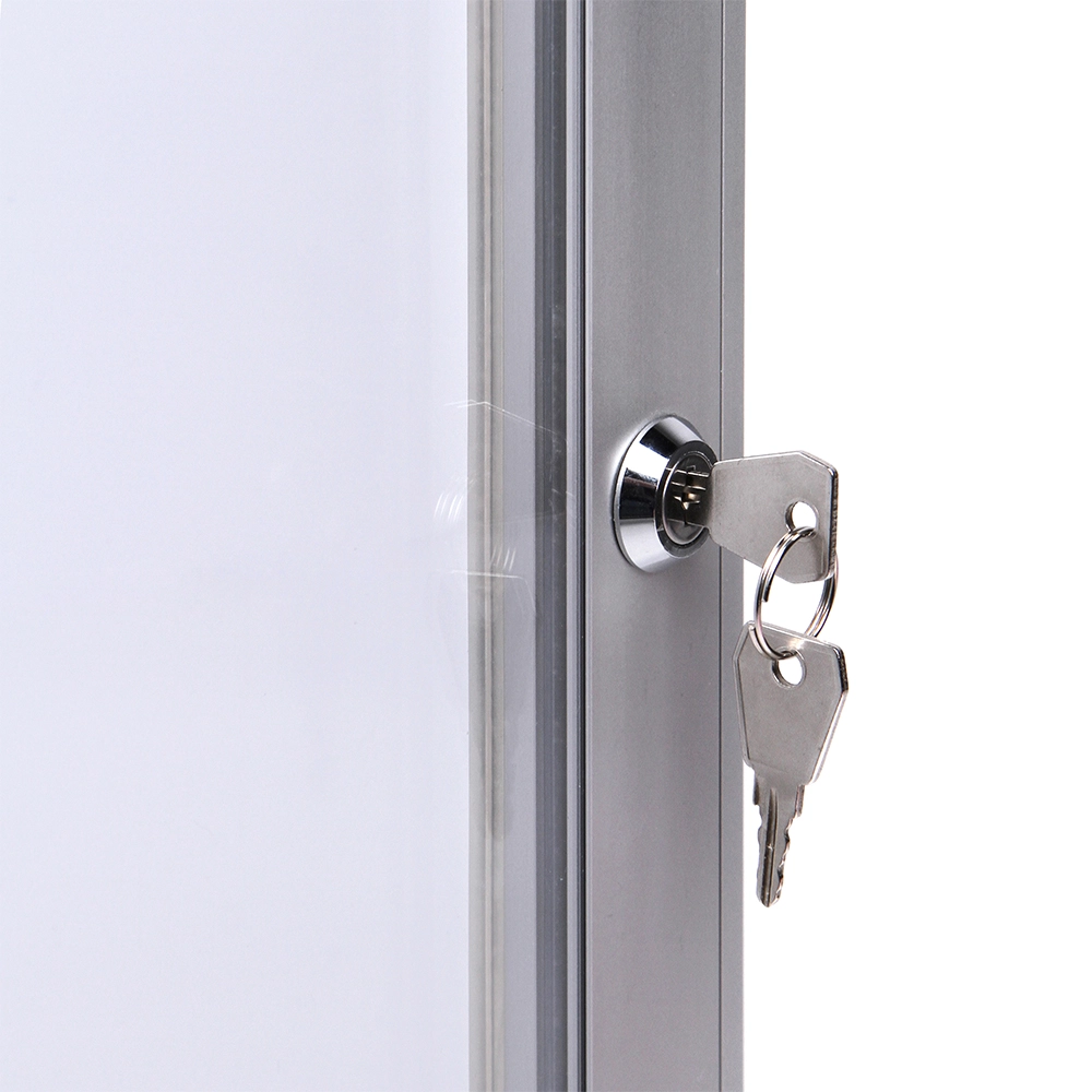 Robust, benutzerfreundlich und schlicht. Ein perfekter Schrank, in dem Ihre Botschaften gut zur Geltung kommen! Mit einer multifunktionalen Rückwand ist der abschließbare Schaukasten für den Innenbereich sowohl beschreibbar als auch magnetisch. Hauptsächlich für den Einsatz in Innenräumen, aber auch für geschützte Außenbereiche geeignet. Hochwertiger beschichteter Stahl, der eine optimale Langlebigkeit gewährleistet.Technische Daten