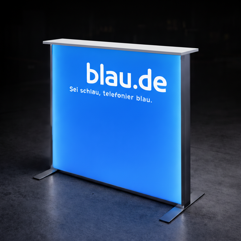 "Erleben Sie den Wow-Effekt auf Ihrer nächsten Messe mit unseren beleuchteten LED Messetheken! Unsere Messetheken vereinen modernes Design und praktische Funktionalität, um Ihre Marke und Ihr Unternehmen optimal zu präsentieren.