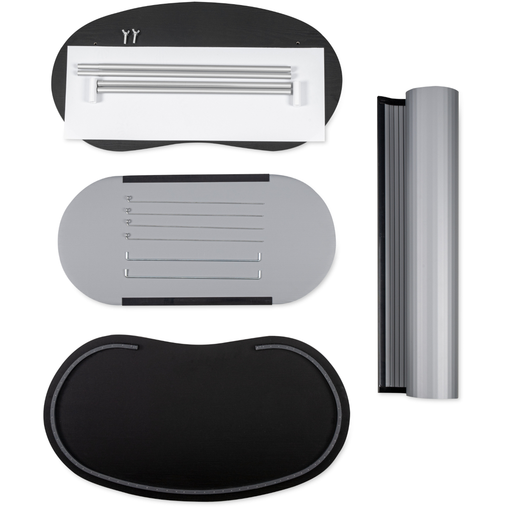 Die Werbetheke / Messetheke / Promotiontheke Easy Topper überzeugt durch ihren stabilen Lamellenkorpus und die hochwertige Verarbeitung. Die 16 mm MDF Boden- und Tischplatte sorgt für zusätzliche Stabilität und Langlebigkeit. Die Theke ist zusätzlich mit einem Einlegeboden ausgestattet und hat dank dem Topschild eine höhere Fernwirkung. Der Aufbau erfolgt mühelos dank der Klettbefestigung der Tischplatte. Das Plattenset wird in einer gepolsterten Tragetasche geliefert, während der Transportköcher eine Tasche für die Lamellenabwicklung und Grafik umfasst.Branding / Aufdruck