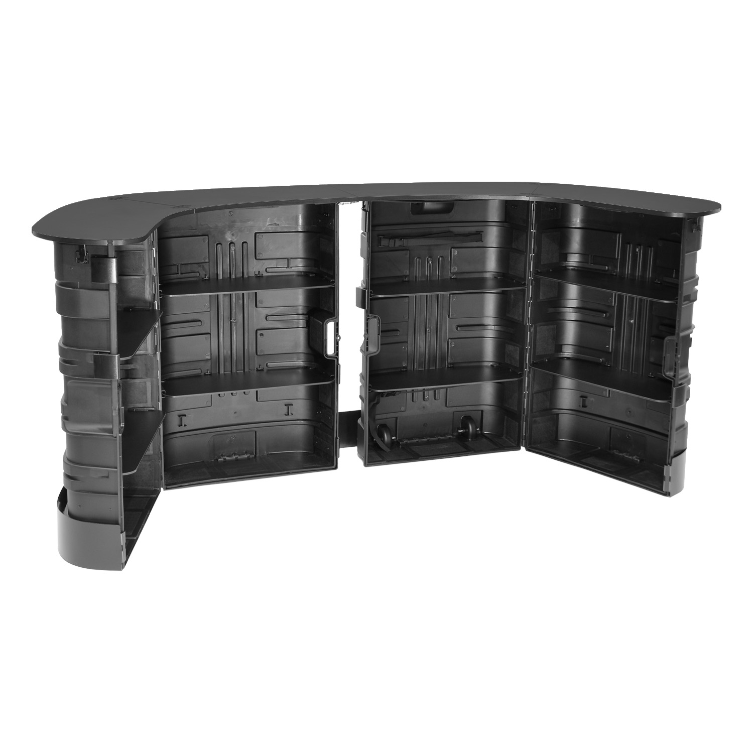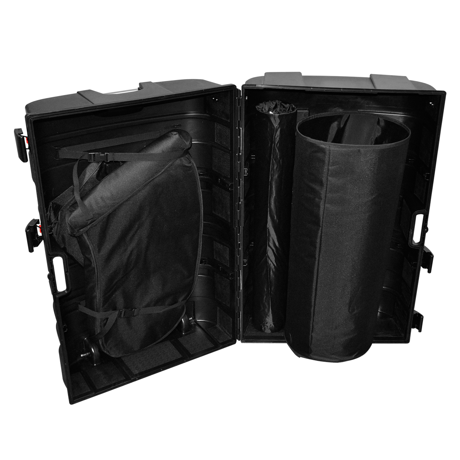 Die Expo XL Messetheke kombiniert hochwertige Transportlösung und beeindruckende Präsentationsfläche in einem. Der robuste, rollbare Koffer bietet Platz für bis zu zwei Faltdisplays und verwandelt sich schnell in eine großzügige XL-Theke. Klappbare Thekenplatte in Silber, Weiß oder Schwarz sowie acht schwarze Einschubböden sind sicher in gepolsterten Taschen verstaut. Inklusive Paneel-Köcher, Rollenabdeckung, Kartonhülse und Befestigungskit für die Grafikbanderole – perfekt für professionelle Messeauftritte.Branding / Aufdruck