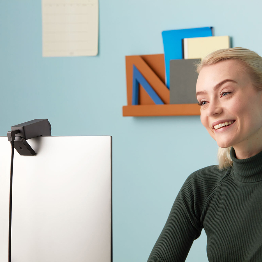 Mit Portrait Lighting nutzt Huddly ONE AI, um die Lichtverhältnisse im Bild zu verstehen. Die Kamera optimiert automatisch die Helligkeit, so dass Ihr Gesicht gut ausgeleuchtet ist und Ihre Mimik sichtbar ist.